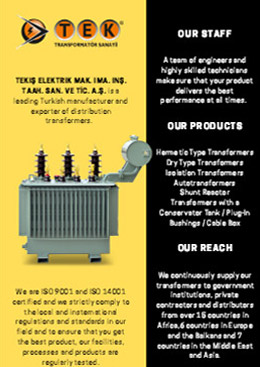Cu peste 40 de ani de experiență, utilaje de ultimă generație și producție ecologică, TEK Transformer produce transformatoare de medie tensiune și face pași fermi către obiectivul său de a fi un pionier în lumea globală.